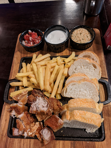 Read moreLugar agradável, o que gostei bastante é que eles tem uma área kids gratuita, com brinquedos e video game para crianças. Eles tem um combo kids (poderia ser mais barato a opção com nugget, é o mesmo preço do hambúrguer) que vem com um brinquedo e tem diversas opções que você pode escolher. Pedimos um hambúrguer que estava bem gostoso, mas é um pouco salgado o preço, pois só vem o hambúrguer, não acompanha fritas. Pedimos também um torresmo de rolo, estava bom, mas estava muito pequeno, poderiam mandar um pouco menos de batata frita e caprichar mais no torresmo, ou até tirar as fritas, porque normalmente quem pede esse prato é que realmente gosta do torresmo, também poderiam mandar um limão pra acompanhar a porção, acompanha um vinagrete, estava ok, uma maionese de alho, uma farofa que estava bem boa e um pão fatiado. Vale a...
