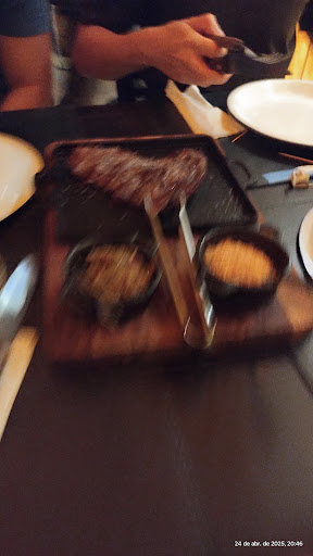 Read moreFui com a turma do meu trabalho dia 24/04/25, ou seja, no total umas doze pessoas. Fiquei exatamente uma hora tentando entender o cardápio, pois os preços dos pratos são MUITO altos e pra minha surpresa, não possuem acompanhamento. Se quiser atriz, tem que pedir a parte. Se quiser batata, tem que pedir a parte. Deveria ter pratos completos. Eu pedi uma carne que se chama Ribeye Steak pelo valor de 219,00. Estava muito boa, é verdade. Mas eu dividi com um outro colega e sinceramente, fiquei com fome. E eu como muito pouco, mas eu desconfio que não vieram 600 gramas de jeito nenhum. Veio um mini molho bem ardido e eu saí de lá frustrado. Sinceramente, não vou nem falar sobre o preço, mas sim sobre a má organização do cardápio, falta de combos com arroz ou outros acompanhamentos e também falta organização. Eles colocam uma pulseira no braço e chamam aquilo de " comanda", mas é daquelas pulseiras de papel com número anotado a caneta. É uma bagunça. Tanto é que lançaram 80,00 a mais de um prato que eu NÃO pedi. Mas como reclamei, excluíram da minha conta. Sobre a música cover, é até legal. Mas sinceramente, eu não voltaria lá porque esse cardápio deixa a desejar. Não é um a lá carte completo, o cardápio é desconjuntado, tem que pedir os itens separados, alguns só possuem uma quantidade que é pouca ou muita. Faltam tamanhos para porções de arroz, batata, etc. E faltam muitos acompanhamentos. Cardápio extremamente pobre de opções. E as poucas que lá estão são bem caras. Não gosto de menosprezar os lugares, mas está é minha opinião. Se você não se incomoda com o que eu disse, então pode ir lá, a carne é boa e a batata também. Mas não espere nada...