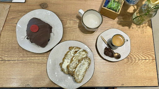 Pedi pão na chapa (Sourdough) de azeitona e sete grãos, fica delicioso com um cafezinho com leite! Em nada deixa a desejar, mesmo se você comparar com padarias de bom/alto padrão de países europeus — ao menos na perspectiva, à partir dos produtos que consumi. Não provei nada além desses pães e o latte. Inclusive, achei limitada a disponibilidade de cafés para uma padaria com tal proposta, mas nada que diminua o local.