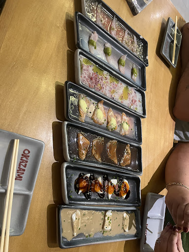 Antes, gostaria de frisar aos demais, que essa é a opinião de uma pessoa muito exigente quando o assunto é comida japonesa. Não gosto sequer de conhecer restaurantes com tal culinária justamente para não correr o risco de não gostar, saindo brava e com fome, o quê já ocorreu antes. (Viram como sou chata nesse assunto né!) Bom, o Okazami Sushi foi uma grata surpresa. A fachada é linda, o ambiente muito gostoso e aconchegante, ambiente casual, com garçons muito prestativos, simpáticos, educados e onde não se demora para começar a chegar a comida, muito pelo contrário. Aos domingos pelo que fomos informados, o preço é do rodízio completo, que inclui camarão, lula e outras iguarias que normalmente estão na lista dos rodízios completos dos outros restaurantes. Fui com meu marido e dois filhos, uma de 8 e um de 3 anos, que comeram muito bem! As 4 estrelas são apenas por um motivo e "meio", vamos dizer assim. Sou uma amante da tal couve frita e ela costuma ser imprescindível quando vou escolher um restaurante. Sim, parece bobagem mas eu amo isso! Assim que fizemos nosso pedido do rodízio meu marido já logo brincou com o garçom dizendo que se pudesse eu comeria a couve pura num pote. Ele gentilmente me deu uma porção só de couve frita. Porém infelizmente não consegui comer tamanho o gosto amargo de queimado. E o 'meio' motivo, é que no finalzinho, já estávamos satisfeitos (ainda bem!) pedimos dois salmões grelhados para as crianças, porém chegaram meio queimados, não dava pra comer pois amargou o salmão por dentro. Não reclamei justamente por já ser o final e todos estarem satisfeitos. Adorei os temakis, muito saborosos e eles ainda ainda na opção empanado, uma novidade muito gostosa segundo o meu marido. Ah, tem sushis doces MARAVILHOSOS no final como sobremesa, banana flambada ou vc pode pedir sorvete na taça também, que vêm muito bem servida e pela opinião de um amante de sorvetes (meu marido), era um delicioso sorvete! Tudo muito bom do início ao fim. Pena que não comi minha couve e teve esse contratempo justamente no final com o salmão. Pra finalizar, achei o preço ok, se não me engano foi R$59,00 a janta do rodízio completo, minha filha de 8 anos pagou meia e meu filho de 3 não foi cobrado. Enfim, é um lugar que eu voltaria sim. Mas se tivesse uma couve frita boa, eu virava cliente...