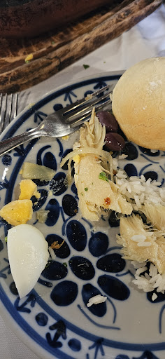 Read moreRestaurante pra quem gosta de tomar garfada! Começa logo na chegada, 15 reais para estacionar o carro no sol e na poeira.(obrigatório visto que na serra ñ tem onde parar) Espera sem fim para sentar (estava com bebe e mesmo assim esperei quase 2 horas), espera sem fim para chegar o prato. Os pratos são caros e poucos, servem duas pessoas bem se comerem pouco, senão saem com fome. Estavamos em 4 pessoas e um bebe, pedimos 2 pratos, o bacalhau em postas (98,00) estava o puro sal, já o outro que mais parecia bacalhau ralado (78,00) não tinha gosto de nada, parecia ter sido feito com restos de peixe, não tinha sequer azeitona e ovo cozido.(como dizia o prato) O ambiente é extremamente apertado e abafado, os garçons são desatenciosos, passam correndo pra lá e pra cá e não veem as pessoas chamar, esbarram nas cadeiras o tempo todo. Pra coroar ainda incluiram uma bebida na conta que não pedimos. A única coisa boa foi a Sangria que é realmente sensacional, de resto, péssimo, não indico a ninguém, fiquei extremamente...