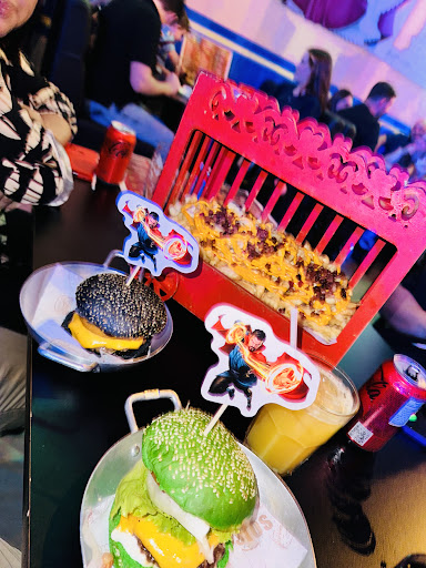 Read moreUma hamburgueria caríssima pro que oferece. O ambiente é ok, tem personagens desenhados nas paredes mas em cores diferentes dos da Disney. As crianças não identificam e bugam, tipo um Capitão América verde e uma Cinderela rosa. Achei meio nada a ver. Mesas com cadeiras de plástico. Os personagens são solícitos, aparecem de tempos em tempos, nessa hora as crianças ficam bem eufóricas. O espaço Kids se limita a um brinquedão com cama elástica de um lado e escorregador com piscina de bolinha do outro. Banheiros simples sem possibilidade de trancar as baías com os vasos, vc precisa ficar segurando a porta. Não reparei se tem trocador nem se é acessível pra mães e pais. O atendimento é péssimo! Os lanches são gostosos, mas custam entre 40 e 50 reais e não vem com batata, tem que pedir a parte e custa mais 27 ou com cheddar e bacon 35. A porção é pequena. Refrigerante 10, sucos de lata 13, natural quase 20, uma long neck 17 reais. E no final cobram couvert de 10 por pessoa (adulto e criança), e mais os 10% de serviço. Soma 50 de hambúrguer, 27 de batata, 20 de bebida, 10 de couvert e mais 10% de serviço, pode colocar 100 reais por pessoa, fácil fácil. Ah, sobrou um hambúrguer Kids da pequena que pedirmos pra embalar p viagem, cobraram mais 3,50 da embalagem. Para os padrões de Guarulhos, caríssimo....