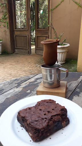 Read moreVi algumas fotos do Otávio Machado no Instagram e logo fiquei com vontade de conhecer. Parecia ser um lugar bonito, porém quando cheguei quase mudei de idéia e estava prestes a desistir. Primeiro pq a rua é um pouco apertada e não tinha vaga e segundo que ao olhar o estabelecimento, você vê aquela cobertura que fica voltado para a rua Otávio Machado e me fazia lembrar um bar de uma cidade do interior. Depois de dar a volta, acabei encontrando um lugar para estacionar e fui até o Otávio Machado. A área mais bonita das fotos do Insta estava fechado para evento, então optei por sentar próximo a entrada do salão, que fica na lateral do estabelecimento. Até me senti seguro estando lá porque o contratante do evento havia colocado um segurança ali na porta da entrada do salão. Confesso que se fosse um dia normal e o salão estivesse fechado, teria ido embora, pois como é tudo aberto, voltado para a rua e longe dos olhos do pessoal que fica no balcão acho é muito inseguro. Olhei o cardápio, achei os preços bem em conta e até abaixo da média de outros estabelecimentos. Acabei optando por um café coado e um brownie. A idéia do café no coador de pano achei um charme, mas fica só nisso. Para falar a verdade não acho muito agradável o café ser servido neste método. Primeiro pela sua higienização e segundo pq suja toda a base se o café ficar gotejando sobre a base enquanto vc tira a caneca. O ideal seria um método V60 ou até mesmo a velha Melitta de guerra. Outra crítica a ser feita sobre o café foi o fato de terem feito a mesma moagem do espresso e terem trazido uma leiteira com mais água que o necessário para a extração do café. A moagem do espresso é fina, no café coado essa moagem acaba superextraindo o café, o ideal seria uma moagem média, no moedor profissional uma moagem 6/7/8 seria o ideal. Precisei mexer o café enquanto colocava a água para que pudesse gotejar mais rápido e o café não ficar superextraido. Quanto a água, acho que deveria ser entregue na proporção do café, para cada 1g de pó : 10/12/14 ml de água, por exemplo: 10 g de pó, 120 ml de água. O brownie achei um pouco doce, ainda mais por ser de chocolate amargo, mas estava bom. Se comer o brownie e logo em seguida tomar o café.....o café irá quebrar um pouco dessa doçura, isso se vc beber café sem açúcar.