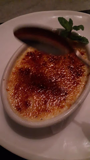 A sobremesa escolhida foi o crème brûlée, bem servido e delicioso.