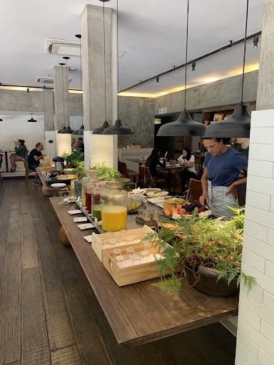 Read moreTentado pela arquitetura do ambiente, me senti tentado a entrar e experimentar os pães artesanais de São Paulo, uma vez que moro próximo de muitas padarias de fermentação natural em Curitiba. Fui então pra comparar. O pão é bom? É. Vai bem com o café? Sim. Mas o atendimento? Péssimo. Eu até queria fazer um "mea culpa" e dizer que fui em um horário ruim, próximo de fechar, estava cheio e que entendo se a pessoa estava cansada em atender. Não foi o caso. Eu não gostaria de resumir a cozinha ao atendimento e entendo que a região demanda um valor acima do que eu pagaria no mesmo lanche em Curitiba ou em alguma padaria mais central de São Paulo, mas o valor cobrado para ter um atendimento nada acolhedor e que me pareceu ter sido cobrado 13% de taxa de serviço me faz questionar onde as pessoas acham que para um lugar ser bom ele tem que ser bonito, ser caro e atendimento ruim pra valer a """experiência""". Não volto e não recomendo.