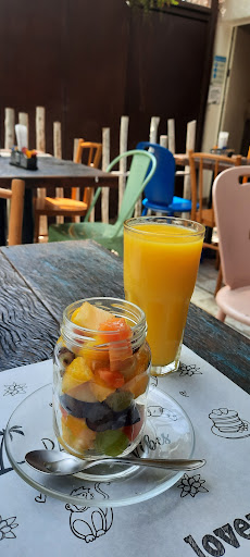 Já estava na minha lista há algum tempo, porém sempre esquecia de ir conhecer. No sábado, 07/10/23, finamente acabei indo. E olha que nem foi meu plano A ou B kkkkk Depois de sair do parque estava andando a caminho de um café novo que inaugurou na Rua Colômbia, porém como estava muito quente e já estava cansado acabei desistindo e pensei em ir no concorrente do quarteirão de baixo do PADANG...mas quando cheguei em frente pensei: "Já vim várias vezes aqui, queria algo diferente" aí lembrei do PADANG. Pelo horário, por volta das 11 da manhã, estava bem tranquilo....algumas mesas livres. Dei uma olhada no cardapio, procurei algo mais refrescante. Queria um orange coffee, mas como não havia no cardápio, resolvi pegar um suco de manga. Para comer, pedi uma salada de frutas. A salada de frutas é bem básica, feita com maçã, uvas, manga e mamão. Ajudou a recuperar a energia que gastei correndo no parque. O suco de manga tbm estava bom, não estava gelada. Pedi para que me trouxessem gelo a parte.