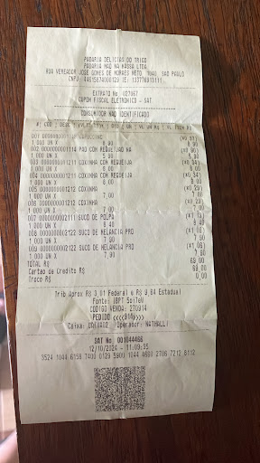 Read moreOntem dia 12/10/24 visitei a padaria delícias do trigo juntos com familiares, mas tive uma péssima experiência. Pedimos um capuccino , dois pão com requeijão na chapa , dois sucos de melancia e duas cozinhas com requeijão, chegou até a mesa tudo que pedimos , porém as coxinhas veio sem requeijão , até aí tudo bem passei para o atendente eles me disse que ia concertar a comanda pois é R$ mais cara cada coxinha , no final da refeição eu pedi mais uma coxinha com requeijão , veio certo desta vez. Fui passar no caixa , eu estava um pouco apressando acabei não conferindo a nota. Chegando em casa fui verificar a nota , verifiquei algumas divergências , pois não foi retirado o valor a mais da coxinha que veio sem requeijão , e para minha surpresa teve uma coxinha cobrando a mais no lugar do pão com requeijão que é mais em conta. Mandei mensagem e até liguei via whats app na padaria , informei o caso e a responsável disse que era pra mim ter conferido no local , e que não iria fazer nada e simplesmente parou de me responder … Me deixando no prejuízo , aí eu te pergunto , qual q confiança que temos de ir em um estabelecimento assim , e haver erros deixando o consumidor lesado e eles simplesmente não está nem...
