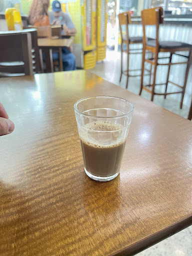 Preços acima do normal, não tem variedade e um café com leite nas alturas. 2x vc paga um almoço completo, então é...