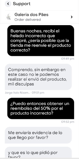 They said the only thing they could do is send a motoboy to take my ice cream and switch it with the one they sent, I denied it obviously not to mention I already used the container because I needed it at that time, not later. This is completely unsafe to resell to another customer yet they would do it anyway, the amount of Brazilian consumer protection laws this company and so many others violate on a daily basis here in this city of São Paulo is not only staggering but mind-blowing. So I waste my time and get caused stress and I'm supposed to just deal with it and have nothing in return? How difficult is it to get such a simple order right, for Christ's sake. It's constant problems or literally abuse here in this city and the locals laugh at your suffering.
