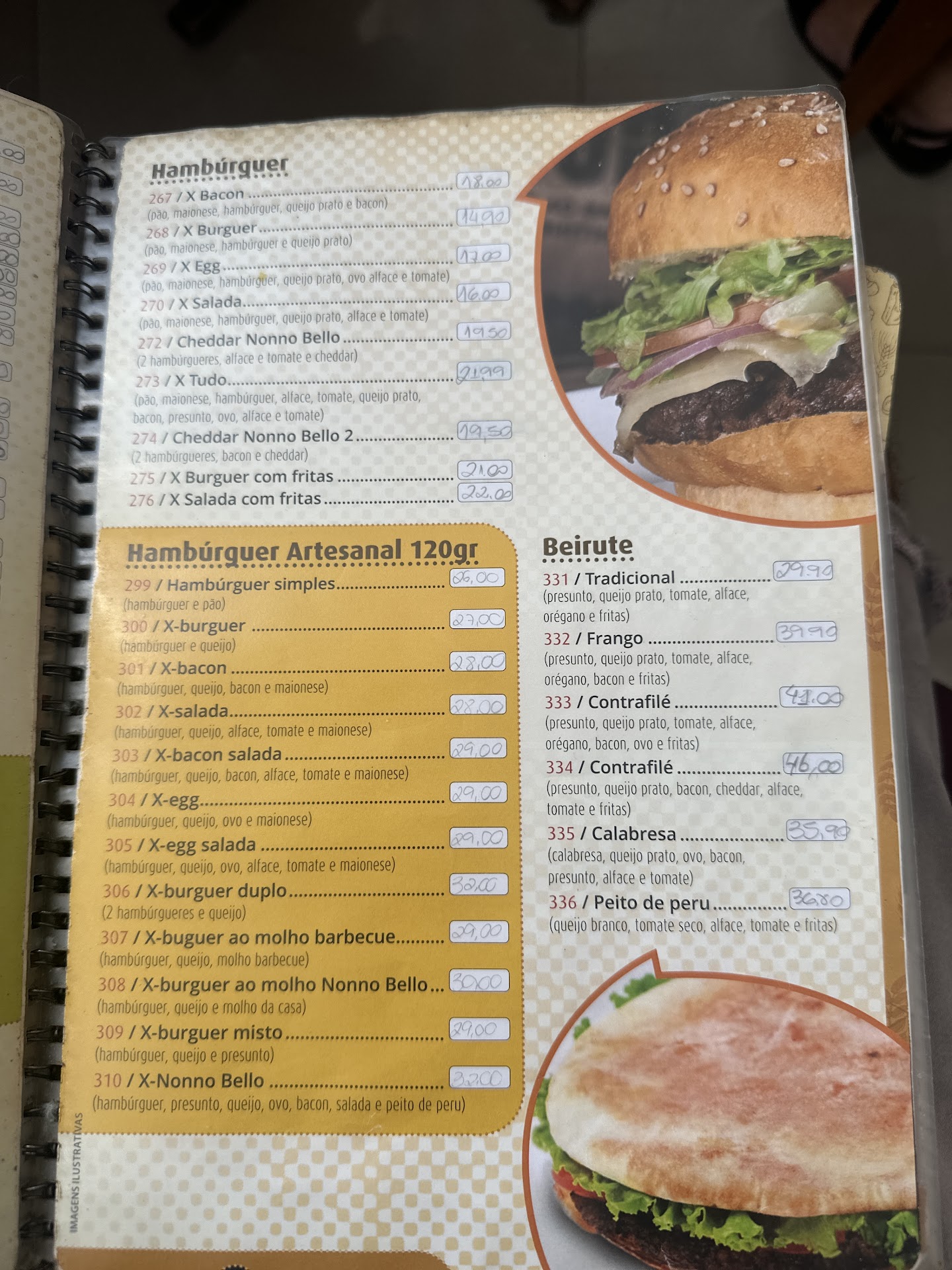 O cardápio tem bastante variedades mas estava rasgado e com sinais claros de estar bem velho e sujo, e isso não é nada higienico, após isso ficamos questionando como seria a higiene dessa cozinha.