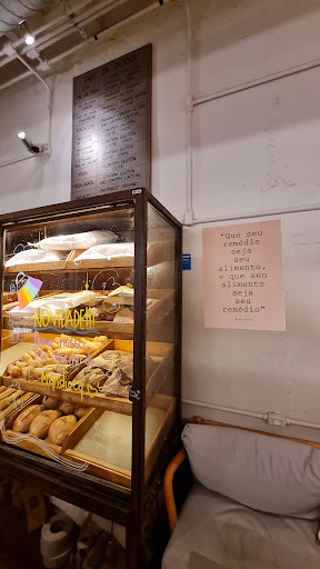 I wasn't expecting the tasting menu from Maní (obviously) but I definitely expected more from one of Helena Rizzo's restaurants. I know that Padoca is the more casual of the three restaurants with more accessable pricing and dining experience, but at the very least I would think the dishes would be well seasoned and delicious. We ordered the mini polvilho with the house made coalhada (sour cream). The alternative choice was an industrialized requeijão, a surprise they would even serve an industrialized cheese like that, but their sour cream was very good. We also had the Rosbife de filet mignon which came with a warm potato salad and lettuce with what was supposed to be a dijon dressing. The filet mignon was dry and chewy. The potato salad was better the next day, we brought the leftovers home and added sea salt and butter which brought out the flavor of the herbs. We did ask for salt at the restaurant but they only had iodized table salt in little paper packets. The soup of the day was pretty good. It was a creamy potato leek soup with their house bread. Tasted like it had homemade chicken broth and the bread seemed to be naturally fermented and was covered in seeds. We brought home a slice of gluten-free chocolate hazelnut cake that was moist and surprisingly good after the meal we had. The service was good, and the space is cute and on trend, although it's a very small space inside and even though there's a lot of interesting added value products to buy like the Maní olive oil and some good looking coffees and ghee, we couldn't even shop because all the products are on shelves in the hallway entrance and standing there to look at products blocks the flow of people entering and exiting the restaurant. I think we will try again for breakfast-I really want to...
