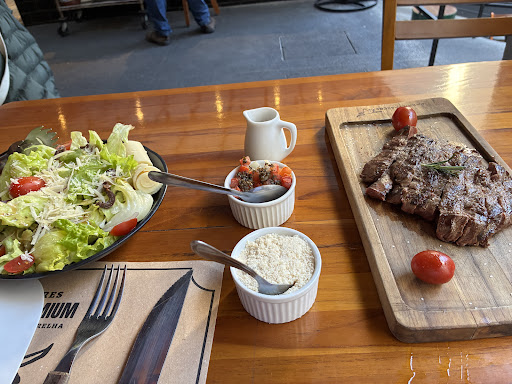 Quando nossas carnes chegaram, o gerente veio nos perguntar se queríamos pimenta ou chimichurri. Aceitamos, e lá se foram mais 5min até chegarem kkkkk. Eu acho que ele se esqueceu e ao olhar pra nossa mesa novamente, trouxe os potinhos.