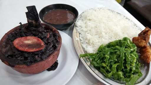 Hoje dia de comer uma feijoada mini, e é mini em todos os sentidos, no tamanho, no sabor, nos ingredientes, no preparo, no atendimento, menos no arroz que esse sim veio até em exagero. A apresentação do prato é simples e até um pouco fraca. A quantidade da feijoada mini é bem pequena, uma cumbuca que mal cabe pequenos pedaços de todas as carnes e feijão, até mesmo o atendente diz que se quiser mais feijão, e somente feijão poderia pedir. O arroz vem numa grande travessa e numa grande quantidade, com um pedaço de torresmo e um pouco de couve. O molho apimentado vem à parte e até agrada por não vir pouco. A degustação começou pelo arroz com feijão. O arroz é levemente duro e bem solto, tem um bom aroma e até pode agradar um pouco pelo sabor, mas a consistente destoa bem do feijão, que não é muito saboroso, parece não haver tempero e até as carnes parecem não ajudar, a mistura de arroz e feijão parece privilegiar demais o arroz que não tem nada de mais. As carnes na feijoada são bem variadas, tem pé, orelha, linguiça, costelinha, carne seca e de porco. Aqui o sabor até consegue melhorar, as carnes têm um pouco mais de sabor, a linguiça é bem-feita (apesar de parecer calabresa frita e depois colocada na feijoada), mas acaba sofrendo pela pouca quantidade e pelo excesso de gordura, vários dos pequenos pedaços são praticamente pura gordura. A couve vem fria, quase sem gosto e é um pouco complicado saborear com o resto do prato, algo que prejudica um pouco mais a experiência. O torresmo é quase puro óleo, quase sem sabor deixa a boca totalmente gordurosa, o que deixa uma sensação ruim de não ter muito sabor, apesar de ser bem crocante. O atendimento da casa, apesar de simpático, parece um pouco desorganizado, a feijoada veio e os acompanhamentos demoraram uns 3 minutos, isso porque a cozinha simplesmente parecia não estar preparada para servir o prato do dia de imediato, algo chato de perceber. No geral, uma feijoada que fez da característica 'mini' ser o principal fator da experiência, tamanho mini, sabor mini, atendimento mini, experiência mini, até mesmo a caipirinha que oferecem não dá maiores créditos à alguma coisa, realmente um lugar que pode oferecer um prato barato, mas nada além disso.
