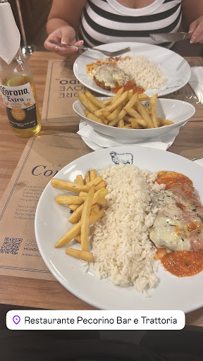 Bom no domingo de eleição, e após ela fomos almoçar no Pecorino. Abordagem ok , mesa rápida , estava limpo e pouca gente . Realizamos o pedido de um gnocchi 3 queijos , e meu marido um pollo a la parmegiana. Em resumo sobre o que achamos : nhoque sem gosto , sem tempero e gosto acentuado de farinha de trigo, de verdade eu não comi um bom gnocchi, molho branco aguado muita quantidade para pouco gnocchi , sem gosto ( não gostei e foi minha primeira experiência no local ), do meu marido o filé parmegiana estava muito bom , batata frita de saquinho de mercado ( pelo menos parecia ,nada demais ), e arroz duro, seco e sem tempero nenhum. A soda de tangerina é muito deliciosa vale a pena experimentar, achei refrescante :) Atendimento ok , não achei atrativo e diferenciado , pelo contrário sério e robotizado, desatento e relapso , não tem cada cliente é um cliente , a não ser um garçom que foi bem atento escutando de longe meu pedido (não me recordo o nome mais ele usava um topete refinado e óculos ).