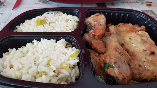 Pedindo um Delivery: 1 pescada amarela à baiana 1 coxa e sobrecoxa assada 1 fraldinha grelhada com chimichurri 1 feijoada do Pepper Torta de chocolate (fatias)