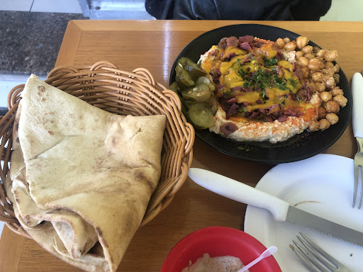 Read moreEstávamos em 3 pessoas. Chegamos 12h30 - 05/02/23. Importante - Cuidado com a taxa de serviço! Minha conta deu $281 e queriam cobrar um total de $328 (17% por um serviço péssimo). O que mais me chamou a atenção foi o atendimento péssimo. Os garçons pareciam “bater cabeça”, sempre com pressa, sem simpatia, atendimento frio. Eles reforçam desta maneira um ambiente de fast food, porém o valor não é de fast food. Detalhes do atendimento: pedimos 3 sucos. Dois demoraram uns 20 minutos para chegar e o terceiro meia hora. Todos levados a mesa pelo garçom, quentes, sem gelo. A comida já havia chegado bem antes; pedimos para embrulhar metade de um sanduíche, o garçom trouxe um saquinho pequeno com a boca do sanduíche para fora. ”Tipo, se vira” ao pagarmos a conta, um cartão nacional ativado para pagamento internacional deu uma mensagem de “erro - não recebemos com cartões internacionais” que o garçom se limitou a dizer que sempre recebem cartões internacionais, mas não tentou resolver o problema. A comida: Sanduíches não recomendo, insossos (provamos 2 deles). Um deles (não peçam) yiddishe schnitzel servido no pão trançado desmonta inteiro, o jeito foi pedir talher. Insosso, sem sabor de nada e pão ressecado. Boa pedida é a porção de falafel, o bolovo de falafel e a shakshuka tradicional. A experiência geral - muito caro para o pouco...