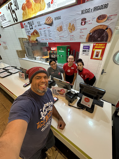 Fui com meu namorado nessa unidade e só decepção, primeiro que haviam 2 atendentes, uma estava servindo um cliente e a outra que estava no caixa não não nos deu atenção, depois de minutos parados olhando para o caixa ela veio nos atender com má vontade, segundo que não tinha o My box e informaram que era por conta do horário, nunca vi isso e não á nenhuma informação sobre isso, então nos venderam a promoção de 12,90 ( breads ou refrigerante mais 2 fatias ) perguntamos qual a diferença dessa pro My box por que era praticamente a mesma coisa do My box e ela sem muita paciência falou e não vimos muita diferença por que a do My box era super fatia e a outra não,a outra só tinha peperoni e queijo ( sabores limitados, por que no my box era 4 sabores e eu ia pegar marguerita) se não tem um produto e não tem em local nenhum que esse produto tem um horário limitado deviam vender os sabores que tem no My box, por último pegamos o pedido e não tinha os breads, pediu que a gente esperasse 7 minutos pra eles ficarem prontos, comemos a pizza e nada dos breads, meu namorado foi lá após uns 15 minutos e esperou mais uns 10 pra poder pegar os breads e quando olhei as atendentes mexendo no celular e nem um pouco preocupada com o cliente. Já estava quase na hora de fechar, mas o atendimento precisa ser bem feito...