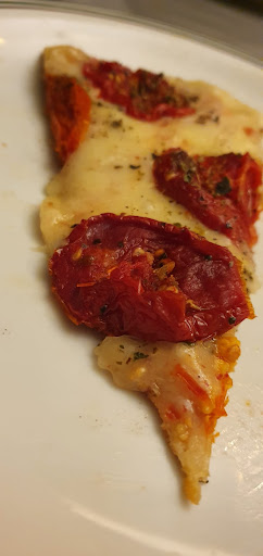 O atendimento também deixou a desejar. Uma garçonete com cara fechada e mal-humorada nos encarava constantemente. No final, comemos apenas dois pedaços cada um e pedimos para levar o restante para casa. No dia seguinte, ao esquentar a pizza, encontramos uma linha encaracolada na pizza de peru, que parecia um fio dental. Ficamos tão enojados que jogamos o restante da pizza no lixo.