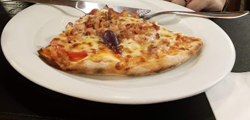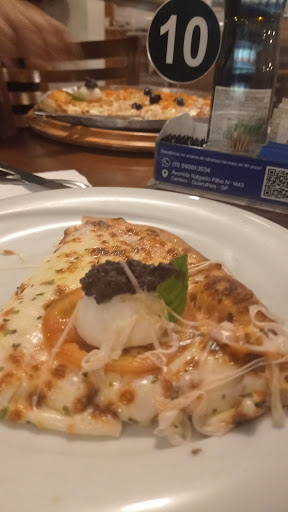 Read moreA pizzaria fica próxima ao Lago dos Patos, num local que, por si só, já é muito bonito. A pizzaria se encaixa bem na região, é bem decorada com vigas e colunas de madeira, bem como mesas e cadeiras de madeira, o que dá um ar aconchegante para o local. Nao ha mesas externas. O salao é bem espaçoso. Fomos jantar. O cardápio é bem completo e variado. Comemos 4 queijos, peperonni, frango com Catupiry e Brócolis, todas ótimas. O garçom Rafael que nos atendeu é muito simpático e cortês. O preço é razoável e compatível com a qualidade, nem básico, nem absurdo. O ponto negativo fica pelo refrigerante, que só tem opção de latas, o que encarece demais a conta no final. É ruim não ter opções de bebida grande quando vamos de...