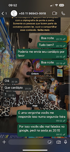 Read morePéssimo atendimento , pedi uma pizza doce , demorou mais de 1 hora e meia laa chegar , se eu não chamasse a atendente no whatsapp ela não me daria nenhuma satisfação, ou seja esperaria sem lá mais quanto tempo se é que chegasse , quando chegou , a pizza estava toda vazando chocolate para fora da caixa , quando abri estava , feia , chocolate vazou tudo em cima do Romeu e Juliane, sem falar , que era uma pizza que não dava vontade de comer , de tão desleixada que chegou aqui , eu era cliente sempre comprei depois dessa nunca mais , uma falta de respeito com o cliente, um desleixo total. Não...