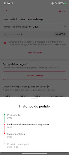 No entanto, até o momento em que escrevo esta mensagem (01:54), o pedido não foi entregue. Estou esperando há mais de duas horas e, apesar de diversas tentativas, não obtive resposta do suporte do iFood e o restaurante também não atende ou responde.