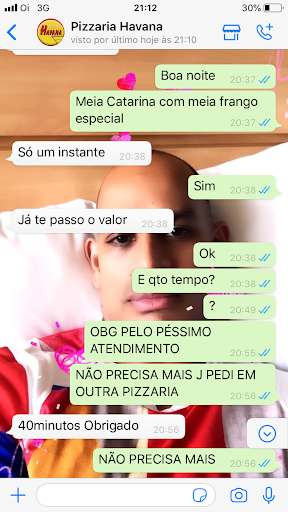 Read moreTinha o hábito de pedir aos finais de semana pizza neste estabelecimento. Porem já por dois finais de semana tive problemas. Além do atendimento sempre ríspido de uma mulher que atende, que aparenta estar trabalhando na marra. Tive novos problemas, de uma vez a pizza demorou 1:20 pra chegar e tivemos que ligar por 2x cobrando e sempre era dito que o "motoboy já saiu". Notado que depois das reclamações nos enviaram um brinde, ou seja, na verdade a pizza não havia saído pois se já tivesse não teria como enviar algo para gerar essa "compensação". Hoje 20/02 fizemos o pedido de sempre, Pizza Meia Mussarela e meia milho. E quando recebida a pizza chegou um pizza com Catupiry que não gostamos. Fiz contato para tentar resolver porem nem quiseram tentar contornar e ainda disseram que a culpa foi da minha esposa que ligou, pois ela passou o telefone fixo e não o celular que é o que costumamos pedir no cadastro. Porem sempre pedimos esse sabor e nunca vem com catupiry e esse argumento do telefone também não é valido uma vez que a própria atendente da pizzaria disse a minha esposa que estava SEM SISTEMA, ou seja de qualquer jeito não teria como ver o histórico dos pedidos anteriores. Não quiseram trocar e nem fazer nada. Informei que perderam um cliente. Não volto a comprar mais e não indico pela postura dos funcionários com cliente e ainda vir com...