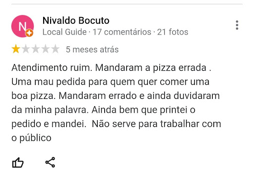 Read moreTriste. Decepção e estresse. Pedi uma pizza vegana no ifood acompanhada de uma Coca 2 litros. Primeiro, falaram que a estimativa de entrega seria de uma hora, o pedido chegou só depois de três. Até aí tudo bem, isso acontece e nem sempre é culpa do restaurante. Mas aí o entregador vem me falar que não tinha coca-cola no pedido sendo que eu estava pagando o preço que constava com o refrigerante incluso. Pedi pela nota fiscal para poder confirmar isso e, acreditem se quiser, o entregador diz que não vai me dar a nota e vai embora. Nunca vi uma coisa dessas na minha vida. Um estabelecimento recusar dar nota fiscal é crime! Obviamente, liguei no restaurante para poder reclamar já que o refrigerante constava no meu ifood sim por mais que eles dissessem não aparecer no registro deles, também reclamei da falta de nota. Acabou que tive que mandar um print do pedido no whatsapp do lugar e a gerente me garantiu o envio do refrigerante. O refrigerante chegou finalmente e, pasmem, sem nota fiscal de novo sendo que eu liguei pra pizzaria pra reclamar justamente disso! No fim a gerente acabou me mandando uma foto da nota pelo whatsapp. Quanto a pizza em si, não recomendo pra quem procura comer alguma opção vegana. A massa veio mole e sem molho de tomate, a proteína de soja não foi temperada, a comida acabou extremamente gordurosa e sem gosto nenhum. Único ponto positivo foi a borda de requeijão vegan. Mas por ter sido uma pizza que custou mais de 80 reais, isso foi um completo descaso! Não conseguiu ficar gostosa nem como pizza do dia...