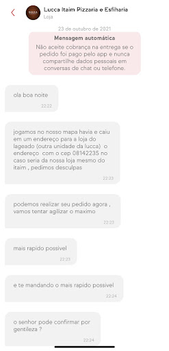 Read moreSempre comprei por terem a esfiha que gosto, porém no dia 30/05 precisei cancelar um pedido por aparecer uma emergência, eles cancelaram ( o pagamento fiz via Pix) e eles me informaram que o reembolso só poderia ser feito na segunda feira, aguardei a semana inteira o CTT deles pois o atendente disse que eles entrariam em CTT comigo, na sexta enviei msg perguntando sobre e a atendente me respondeu que não poderia verificar pois era final de semana dei risada, mas deixei passar e aguardei até a outra semana aí ontem 12/06 o atendente me dá a desculpa que n poderia verificar pois o gerente estava de folga( aí me perguntei sera que largam o estabelecimento sem nenhum responsável que poderia falar comigo) querendo resolver pacificamente sempre mas eles não colaboraram e mesmo hoje 13/06 ainda aguardando...