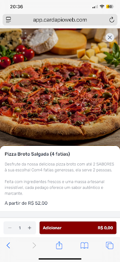 Sou obrigada a dar uma estrela ainda, mas por pura obrigação, paguei 73 reais em uma pizza meio frango catupiry meio marguerita, a pizza veio aí como na foto SUPER FINA sem o mínimo de recheio parece aquelas pizza rap10. Entrei em contato com a pizzaria para reclamar e foram SUPER mal educados discutiram e não quiseram nem saber de nada! Praticamente me falou que a culpa foi minha de pedir sem borda pois pizza com borda leva mais recheio, não nessas palavras mas quiz dizer isso! Não sabem ser profissionais de nenhuma forma, não recomendo não percam o dinheiro de vocês gente, pq realmente comprar em outra mais barata da no mesmo, o "catupiry" é bom mas não é o original, como eles dizem, podem até ter no estoque e colocar em algumas pizzas mas a minha não era com o original pois eu só como dele e sei a diferença por mais que coloquem um que seja bom e parecido. Gente não comprem de verdade, pizza não vale de jeito nenhum, levem em consideração os comentários que fazem aqui pq eu ignorei indo pelas fotos e quebrei a cara. Nem só pela massa fina ruim e queimada e pouco recheio, com qualidade ruim do queijo e não original do catupiry e mal atendimento que é pior pois deveriam pelo menos tentar enviar outra pizza para compensar a reclamação mais preferem perder clientes (não somente eu) mas espero que muitos que iam pedir mais leram esse comentário antes...