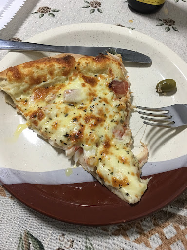 Read moreOlá, boa noite! Pedimos duas pizzas: uma metade calabresa e metade portuguesa e a outra foi de frango com catupiry. Sendo sincera, a pizza estava com a massa crua e sem tempero. Como pedimos duas pizzas (com preços elevados ), perguntamos se teria alguma cortesia (como muitas pizzarias fazem) e eles disseram que sim, teria uma borda de “requeijão”. Pois bem, recebemos as pizzas. A pizza de calabresa estava com um gosto azedo, ambas massas cruas, a borda de requeijão parecia uma maisena e o preço estava bem abusivo comparado as pizzarias da região. Eu realmente não gostei e não compraria novamente. Péssima ...