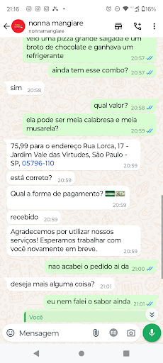 Hoje tive umas das piores experiências em relação a pizzaria , fiz meu pedido as 21hrs , a atendente me disse q iria demorar 1 hora e 20 minutos pela alta demanda de pedidos , até ai tudo bem , as 22hr e 30 min liguei novamente para saber do meu pedido , a moça me deu um novo prazo de mais 40 minutos pois ela me disse q estavam com funcionários a menos , ok , pois passaram mais 50 min , as 23 hr e 20 min , liguei novamente para saber do meu pedido , e adivinhem , meu pedido nem sequer tinha sido montado , e a moça disse q só após mais 30 min , só após quase 3 horas que efetuei o pedido que talvez iria receber minha pizza , isso msm 3 horas e olhe la se a atendente não me desse outro prazo de espera, pois enfim dps de ter sido muito enrolado e ainda sem minha pizza cancelei , coisa q ja era para ter feito bem antes ,pois acreditei na atendente , , resumindo , se a pizzaria nao consegue dar atenção devida aos clientes por favor não peguem o pedido ou ao menos digam a verdade e falem o verdadeiro tempo de espera , pois se de cara a atendente dissesse 2 horas ou mais d espera eu nao iria esperar e iria pedir...