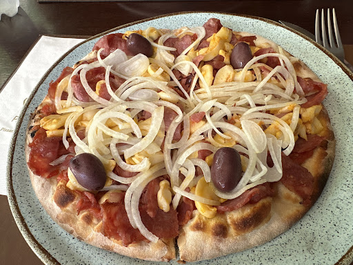 Read moreOrdered a salad an pizza. It was a nice day so we sat outside on the patio. The salad was super-fresh. Although it came without any salad dressing; other than olive oil. Next time I’ll use Google Translate (EN-POR)to ask for some vinegar too. Probably the largest selection of pizzas I’ve ever seen. Did use Google Translate to ask for mushrooms to be added to my sausage, onion, and black olive pizza; great addition. Individual pizza was more than enough for 1; likely good enough for 2. Are the whole thing, so it must have been good. Check the hours. They break for afternoon siesta (or whatever the POR word...