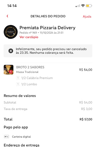 Feedback da família: Ontem, dia 10/07/21, compramos pela primeira vez a pizza da Premiata. Nossa experiência foi a seguinte: