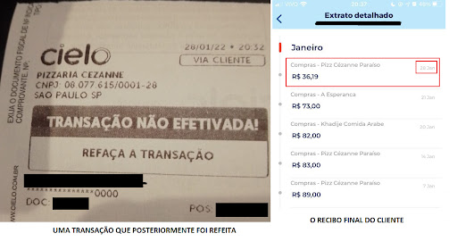 Em 28/01/2022 comprei uma pizza da Cézanne, sem intermediários, pelo valor de R $ 87,00. Paguei R $ 51,00 em dinheiro e o restante no débito. Uma maquininha de cartão, que travou várias vezes, conseguiu efetuar o débito do pagamento em uma das tentativas. Como o equipamento apresentava problemas o entregador não teve como comprovar o pagamento complementar. Mostrei o extrato online do cartão onde se lia “Compras – Pizz Cézanne Paraíso – 28 Jan R $ 36,19”. Apesar de ter pago, a funcionária da unidade Paraíso (Natália) me cobrou novamente o valor. Mostrar o recibo não foi o bastante, tive que adiar o jantar da família, descer a portaria e pagar em dinheiro. A Natália ainda mandou um novo entregador cobrar o valor total da Pizza (R $ 87,00), sendo que ela já tinha em mãos R $ 51,00 em dinheiro e um extrato comprovando o pagamento de R $ 36,19. Posteriormente falei com um responsável pela unidade (Sr. Sérgio) que me disse que em nenhum momento foi acionado ou comunicado pela Natália da ocorrência. Tudo isso levou mais de duas horas e ninguém em casa comeu a pizza. Eu já havia tido outros tipos de problemas com a Cézanne (eles possuem email meu a respeito). Após mais de 10 anos como cliente, estou a procura de uma pizzaria com melhor...