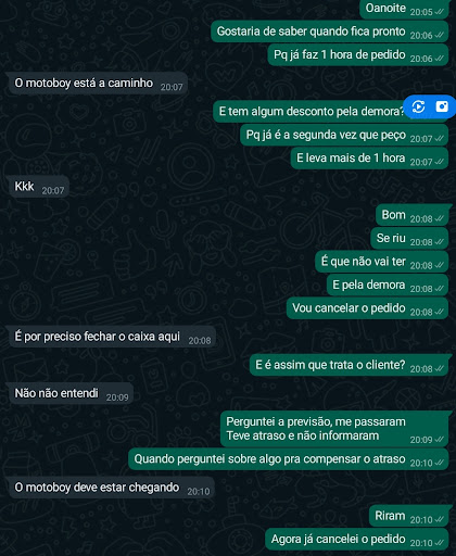 Read moreExtremamente decepcionado com o serviço desse restaurante. Fiz o pedido e, após DUAS HORAS de espera, entrei em contato para saber sobre a entrega. Fui surpreendido ao ser informado que, se quisesse receber a comida, eu mesmo deveria pagar um motoboy, pois eles ‘não conseguem entregar’! Isso é um absurdo, um desrespeito total com o cliente. Além disso, não respondem em nenhum meio de comunicação, seja telefone, WhatsApp ou redes sociais. É inaceitável que tratem os clientes dessa forma. Nunca mais volto a pedir e definitivamente não recomendo a ninguém! Avaliando com uma estrela pois não é possível...