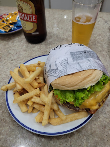 provamos de entrada um "combo tradicional" (40 BRL), que leva provolone à milanesa, calabresa frita e batatas-fritas. a porção é boa, mas pequena (estávamos em duas pessoas) e relativamente cara pelo tamanho. de almoço mesmo, pedimos um bom espaguete ao sugo daqueles clássicos da cidade e uma opção de baby beef com 3 guarnições (50 BRL). o baby beef na verdade não era baby beef, e o pedaço de carne muito pequeno, infelizmente. as guarnições estavam boas, com bom arroz/feijão e uma farofa bem gostosa. mas, realmente, pelo valor cobrado não acho que vale a opção. talvez, o melhor seja focar nas porções/petiscos e sanduíches, que notei serem grandes e aparentemente valem o quanto é cobrado.