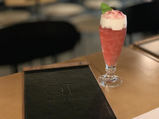 Read moreHoje é dia de conhecer o QT Pizza Bar, que fica na Al. Min. Rocha de Azevedo, 1.096 nos Jardins. ⠀ Com ambiente bem descolado, tem uma ampla varanda descoberta com mesinhas (onde os pets são bem vindos), um bar e ao lado um balanço. As paredes são de tijolinhos brancos rústico, canos e luzes de emergência iluminam o local. Tem até um aviãozinho de metal grudado na parede rs Ao fundo tem um grande forno onde as pizzas são preparadas. Os pratos são de pedra e os talheres na cor preta. ⠀ Em seu menu há opções de entradas, pizzas e sobremesas. Além de uma carta de drinks autorais, coquetelaria, shots, vinhos e cervejas. ⠀ Pedimos de entrada a dupla de pizza frita ($34) uma de costela de boi assada lentamente por 12 horas a baixa temperatura com maionese de agrião e outra fondue de queijo com picles de cebola roxa e o Arancini ($38) bolinho de risoto de costela com maionese de agrião. ⠀ A dupla de pizza é uma massa de pizza preparada com mais água para ficar no formato de um pãozinho e muito bem recheada, o queijo vem derretendo e a costela tem delicioso sabor. O arancini é crocante e muito gostoso. ⠀ Dos drinks 🍹 provamos os QT autorais nas versões não alcoólicas GT Mule ($36) gin, alkermes, água tônica, limão siciliano e espuma de gengibre e o Varadero ($34) sakê, cranberry, framboesa, hortelã, limão, espuma de gengibre e hibisco. São muito bem apresentados e saborosos. O Varadero é muito refrescante com sabor da hortelã bem presente, lembra uma taça de sorvete de morango. ⠀ São 12 tipos de pizzas 🍕 e pedimos a Calabresa ($48) molho de tomate, linguiça calabresa, aioli, cebola caramelizada e couve frita e a de mortadela, que foi destaque no cardápio pelo aniversário de SP ($55) fondue de queijo, mortadela defumada e crocante de pistache. ⠀ De tamanho brotinho, elas vem em uma tábua com o logo da QT queimado. A de calabresa tem um sabor muito gostoso, o molho de tomate está bem presente e como sugestão foi harmonizado com azeite de laranja. Já a mortadela, tem bastante queijo com um pedaço de mortadela em cima, harmonizado com azeite de alho e ervas secas. Sabores que recomendamos experimentar 👍🏻. ⠀ Falando em azeite, o QT possui azeites artesanais, que são deliciosos! Provamos nos aperitivos os de alho e ervas secas, limão siciliano, trufado e pimenta dedo de moça e mel. ⠀ De sobremesa provamos as sticks pizza frita ($22) acompanha um potinho de creme de avelã e caramelo. São como churros espanhol, mas é a massinha da pizza.