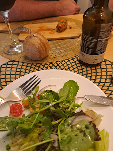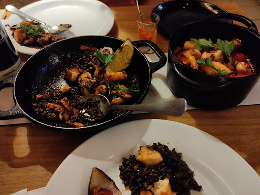 Read moreVimos o restaurante disponível no Restaurant Week e resolvemos ir. A proposta do restaurante é um menu mediterrâneo, com influências latinas, um pedacinho de Trancoso em SP. Há uma carta de drinks favoritos do pessoal atualmente, como o Moskow Mule, entre outros. Comemos todos de entrada o polvo nikey. Um espetáculo! Super macio e saboroso, servido em conchas de vieira. Apresentação impecável para comer também com os olhos. De prato principal todos pediram a parmegiana. Estava muito bom, mas nada comparado com o meu prato: paella negra. Eu raspei a panela se ferro com uma colher de tão bom q estava. Comerei este prato muitas vezes ainda, porque se tornou um dos meus prediletos. Tem um caramelizado da panela de ferro, misturado com o azedinho da fatia de limão q vem grelhado para espremer por cima que é inexplicavel. Prove. De sobremesa eu comi um cheesecake de doce de leite e minha família comeu a mousse de chocolate. Estava bem gostoso, mas eu estava ainda apaixonada pelo prato principal, então não consegui prestar muita atenção na sobremesa. O atendimento é excelente, o espaço não é muito grande e fizemos reserva mas tem vários detalhes na decoração que são bem cativantes, desde a área externa de espera, às fitinhas de Nossa Senhora de Bonfim que dão aos clientes para pendurarem no corrimãoda escada. Acredito que tenha sido a responsável pelo local que nos atendeu, então ela nos explicou a proposta do restaurante, nos falou sobre o porquê do nome e sua relação com a cozinha contemporânea international de Trancoso, enfim, muito atenciosa e simpático. Mal vejo a...