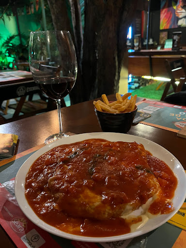 Read moreO nome faz justiça ao local. Fica realmente no quintal de uma casa com muitas plantas e árvores. Poucos lugares e um tanto rústico. Menu simples e sem muitas opções. Como fui num sábado pedi uma feijoada para 2 e o garcon me disse que dava para 3. Quando chegou: surpresa!! Só servia 1 pessoa satisfatoriamente. Apesar de do calor que fazia no dia...o arroz estava frio e a feijoada morna Não vale o valor que se paga R$72,00 . Pedi um filé parmegianna(só de carne de frango) a R$48,00, que apesar de ter molho muito bom e queijo na medida certa, tinha um filet de frango seco e sem sabor. Cerveja só Heineken e Eisenbanh garrafa....apesar dw no cardápio constar...