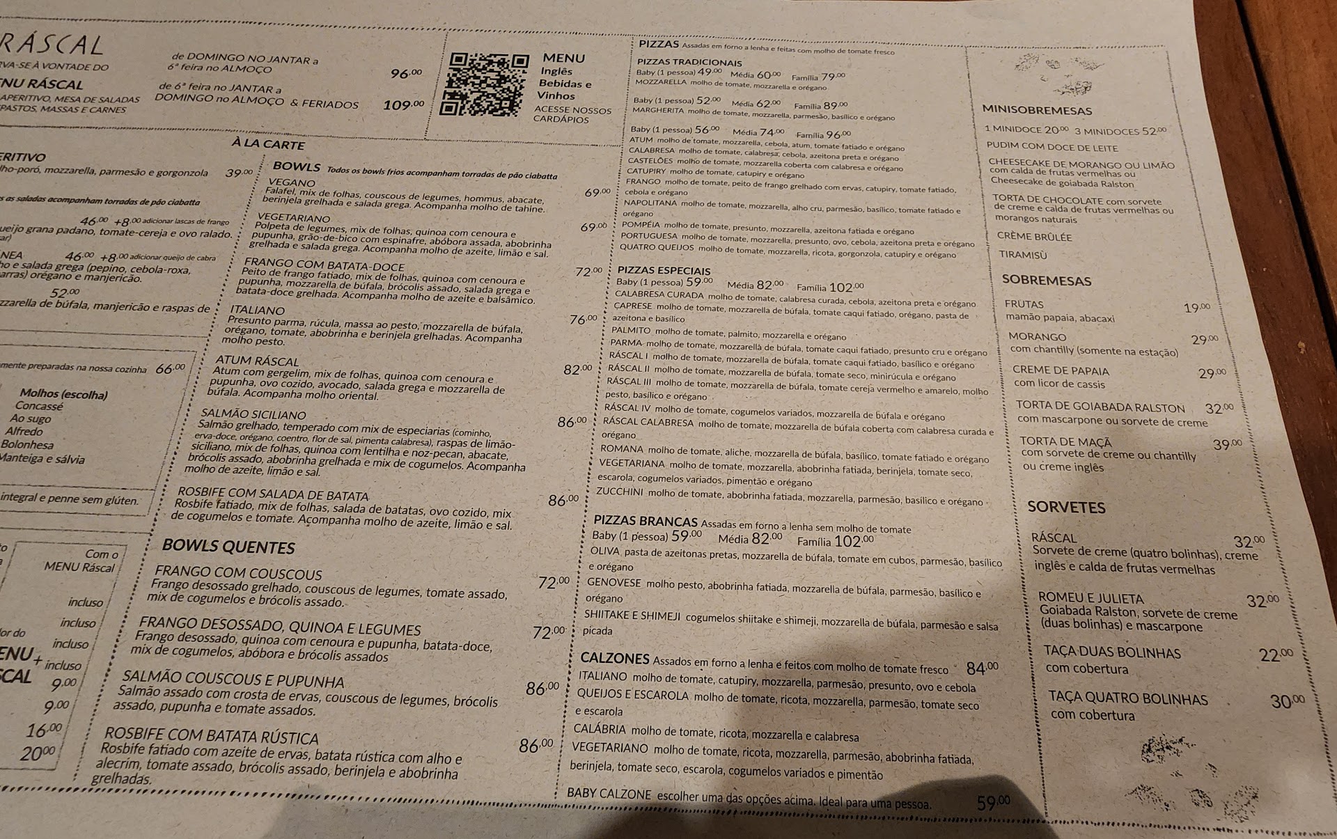 Terceira avaliação em dezembro de 2023: o Rascal continua um local concorrido, com muitas delicias em seu buffet e um ótimo serviço. Lamentei imensamente a mudanca no preparo da guacamole, que agora é feita com creme de abacate! O atual sabor bem pronunciado do coentro e a nova textura cremosa definitivamente não fazem juz à maravilhosa receita original seguida pelo Rascal. A batata chips veio com excesso de sal. Varenique delicioso. Continuo sentindo falta da variedade de queijos ralados como serviam na época pré pandêmica. Segunda avaliação pós pandemia Atualizacao em agosto de 2022 Estou feliz, poucos meses atrás visitei o Rascal no jantar e não o reconheci em sua tradicional excelência. Agora o velho e bom Rascal voltou a 90% de sua boa forma e minha visita valeu a pena. Retornaram os souplats de madeira, agora há parmesão e um outro queijo disponivel à vontade para o cliente dar um gosto a mais em suas massas (nota: pré pandemia eram 3 variedades, agora há 2), nesta recente visita encontrei menos bowls meramente ornamentais no buffet frio, voltou o presunto cru, , etc. Ainda não conferi se fizeram os ajustes necessários no creme inglês da torta de maçã, o qual na visita anterior falhou em textura, sabor e cor. O rolinho de saint peter do buffet quente infelizmente ficou seco e com pouco sabor. Que tal deixar os filets temperados com lemon pepper e imersos num molho com azeite, alcaparra e vinho branco? Primeira avaliação pós pandemia Desde a pandemia o magnifico Rascal perdeu muito em qualidade e variedade de itens do buffet. Ainda frequento esperando resgatar os prazeres de antigamente. No buffet disfarçam a "simplificacao" colocando, por exemplo, um pote cheio de uvas e outro de tomatinhos. Não há mais varios tipos de queijos ralados, para nos servirmos à vontade. Só há parmesão, e os funcionarios nos servem. A torta de maçã agora vem acompanhada de um creme inglês mais aguado, menos envolvente, a receita mudou para pior. Cadê o pão em folha parecido, apenas no formato, com um matza? Será a rede Rascal uma empresa em decedência a ser vendida, como fizeram, anos atrás, com a quase finada e decadente rede Viena? Eu amava o Rascal. Deixou de ser um produto que vale ser...
