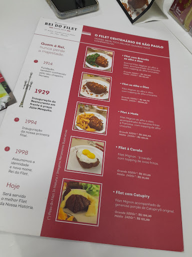 Bom, vamos lá. Eu poderia dizer que a minha avaliação seria polêmica, dado que o restaurante é um dos mais tradicionais da cidade e tudo mais. Mas, basta parar alguns minutos e ler algumas outras avaliações e será fácil identificar outras pessoas que saíram decepcionadas do local, assim como eu acabei de sair. Meu pedido foi um filet à parmegiana no tamanho executivo (120grs de carne, por aí). Tamanho bom e mais que suficiente para uma pessoa que come moderado. Pedi com pamesão para poder experimentar e fugir do lugar comum que é pedir com mussarela. A carne estava extremamente macia e não tenho o que falar sobre ela, agora sobre o restante tenho ressalvas para praticamente tudo: achei o molho sem sabor nenhum! o empanamento era ruim também e o filet ficou sem crocância nenhuma (apenas com a advinda do parmesão, assim como o sabor também, que só vinha do queijo). o arroz estava frio. o atendimento foi um pouco acelerado (mesmo em um almoço com a casa com muitas mesas vazias) e, talvez por isso, o arroz veio errado (pedi primavera e veio branco) e o refrigerante veio apenas com gelo (sendo que eu pedi e repeti que queria com gelo E limão). Fui com a intenção de almoçar e comer uma sobremesa depois, mas no meio da refeição já desisti. Preferi encerrar por ali. Nem vou entrar no mérito sobre o modo de se pagar os 10% separadamente em outra máquina, o que eu acho um tanto quanto bizarro, mas se os donos acham que isso é mais benéfico para os garçons, não serei eu quem irá discutir isso. Enfim, respeito a história do local e acredito que devam ter pessoas que acham ali o melhor parmegiana que já comeram na vida. Mas eu, sinceramente e sem querer diminuir o Rei do Filet, prefiro mil vezes o que é servido no restaurante na esquina da minha casa, que nem é o melhor que eu já comi na vida e custa uns R$ 55. Para título de informação, o parmegiana que pedi hoje custa $63. Eu queria conhecer o restaurante e fiz isso hoje. Agora...voltar ou recomendar para alguém que vá, isso eu não farei. E se me perguntarem o porque, vou apenas dizer que não achei a comida boa. Que há inúmeras opções...