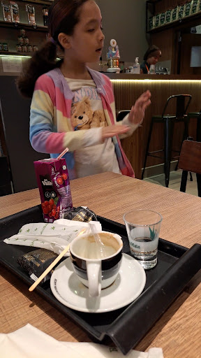 The service is okay, though a bit rushed at times. A couple of downsides: it gets quite loud, especially because every time an order is ready, the waitress shouts from the center of the café trying to find the customer, which breaks the vibe. Also, the bathrooms aren’t the cleanest (still manageable), and there’s no changing table for babies, which makes it tricky for parents.