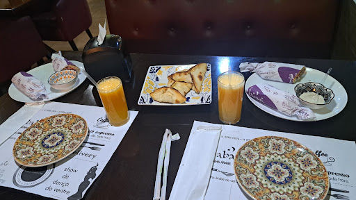 🍴 Refeição: Eu e minha noiva experimentamos as esfihas fechadas de carne e frango com catupiry, a kafta na tábua, e o shawarma de carne. Achamos a culinária incrível, tudo bem temperadinho! As esfihas tem massa leve e são muito recheadas. A fakta na tábua vem com porção generosa de fritas, tomate e beterraba para acompanhar. Para beber, pedimos suco natural de laranja que também estava ótimo! Não conheço muito da culinária árabe, mas ouvi dizer que o shawarma mais tradicional é o de cordeiro. Fiquei um pouco decepcionado porque não há essa opção na casa.