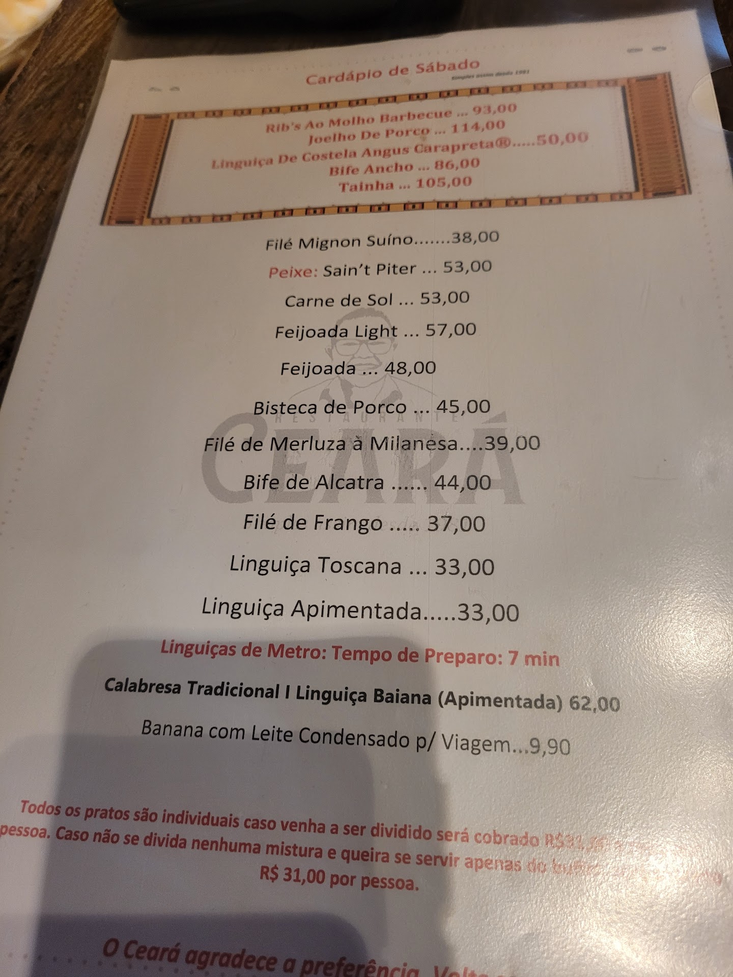 ATENDIMENTO: Excelente, desde o estacionamento, ao atendimento da mesa, e no caixa. Todos são muitos simpáticos e alegres. O Ceará e sua esposa são muito educados e receptivos, não temos o que reclamar.