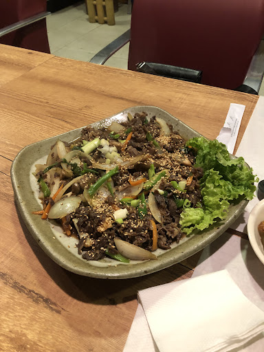 Só tinha um casal de chineses comendo, e sentamos à mesa, estava com vontade de comer algo diferente e grande, como a dona é a própria cozinheira e sem ajudante, demorou se para sermos atendidos. Fui pedir um caldo de burgogui e ela disse que iria demorar muito, tive que desistir, depois fui pedir um goptchang frito e disse também que iria demorar muito, tava na cara que ela tinha compromisso neste dia e queria só fazer pratos rápidos. Pedi então um sundubu que veio com pedaços de cebola grande demonstrando a falta total de respeito ao cliente, mandou um manduk daqueles que se compra no supermercado em cima de um alface, e realmente, só estava bom mesmo a panqueca de tofu com frutos do mar.