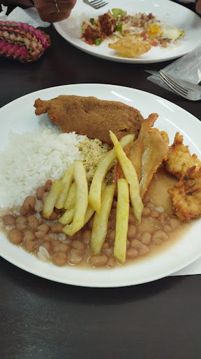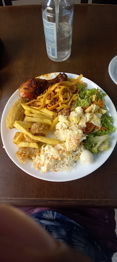 Read moreComida muito boa. Tem bastante variedade de carnes. Fui no sábado e tinha bife à milanesa, frango à milanesa, fígado acebolado, pernil, costela com batata, rabada e frango frito. De salada tinha bastante opção também: maionese, bifum, alfaces, beterraba, palmito, pepino com erva doce e tomate cereja, entre outras opções. Guarnições tinham tempurá de legumes, bolinho de arroz, banana frita, arroz integral entre outras opções. A sobremesa é cortesia e é sobremesa boa como pudim, pavê, brigadeirão, salada de frutas, tortas, entre outras. A partir do meio-dia enche mais. Se você preferir almoçar mais sossegado, melhor vir às...
