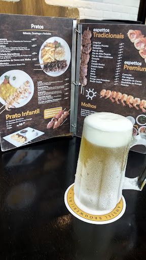 Read moreVamos por partes: o ambiente é bonito, mas a franquia é bem cara. Qualquer espeto custa mais de R$ 10. Achei os atendentes desmotivados em servir. Pode até ser a questão do medo das restrições do Covid ou problemas pessoais: vale aí o olhar da gestão. Pedi uma espécie de wrap de kafta e estava bom, bem apresentado. Minhas amigas tomaram chope e disseram que estava trincando. Porém, a casa usa guardanapo embaixo da caneca. Pode ser pela questão de não querer higienizar "bolachas" ou porta-copo, mas é bem ruim, o negócio fica grudando. Eles têm um piso superior com mesas, cardápio kids e, além dos espetos servem refeições, chás gelados e drinques. Apesar de eu ter gostado, não é um lugar que eu diga: "voltarei, com certeza." Nada espetacular. Nem todas as mesas têm...