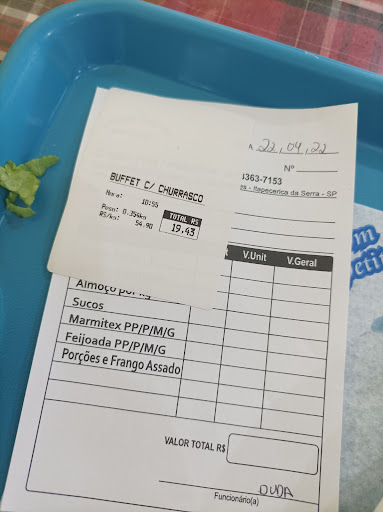 Read moreComida nada demais, normal, o preço que é caro, optei pelo buffet c/ churrasco, peguei minha comida e pedi 2 pedaços de fraldinha e 1 de sobrecoxa, colocaram na balança a tara escrito "Mais carne" o valor do prato deu 40 reais, falei que não era certo e mandei tirar a sobrecoxa e pesar como buffet c/ churrasco somente, e impressionantemente deu o valor da foto, R$ 19,43, ou seja, um pedaço de sobrecoxa iria me custar 20 reais, isso mesmo UMA sobrecoxa ia custar 20 reais... Isso não é correto de...
