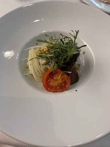 Os pratos servidos durante o jantar estavam simplesmente divinos. O destaque para mim foi o purê de maçã verde, que foi uma deliciosa surpresa. A combinação de sabores e a atenção aos detalhes foram excepcionais, e este jantar realmente refletiu a competência e habilidade da Chef Vivi.