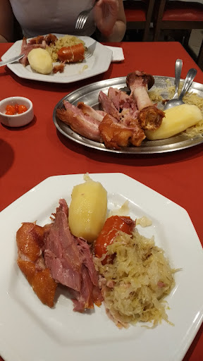 A comida é maravilhosa! Pedimos um dos pratos mais tradicionais que não sei pronunciar. Mas é joelho de porco a pururuca, acompanha salsichão, batata cozida e chucrute. Tudo muuuito delicioso. O arroz pedi a parte e estava uma delícia. É tudo bem fresquinho, então demora um pouquinho mas é incrível. Fui dia 22/06/23.. não me recordo exatamente o total, mas foi em torno de 200 e pouco. Comemos bem e trouxe ainda o que sobrou para casa, aria para 3 pessoas com o arroz incluso (pratos para 2). Reparamos que todas as mesas tinha caipirinha, e pedimos também. Realmente eles sabem fazer, muito boa. Os garçons são antigos da casa, oque indica que a comida é boa e atendimento também. Ambiente com ar condicionado, mas por ser bem tradicional al e antigo o restaurante, as mesas são um pouco juntinhas. Acredito que modernizar um pouco o ambiente seria legal, mas nada que comprometa a qualidade da comida. Uma dica, seria a entrada do que parece ser a parte do bar/balcão orientarem bem sobre parte de restaurante e etc. Como já era em torno de 15h, estava pouco movimentado a parte de mesas que parece ser anexo a essa parte também do restaurante mas que são mesinhas altas, mais para beber e petiscar. Ali você também consegue pedir os pratos famosos, mas com opção de petisco e naomporcao para sentar e comer (pelo o que entendi). Então veja a opção que deseja e aproveite. Vale...
